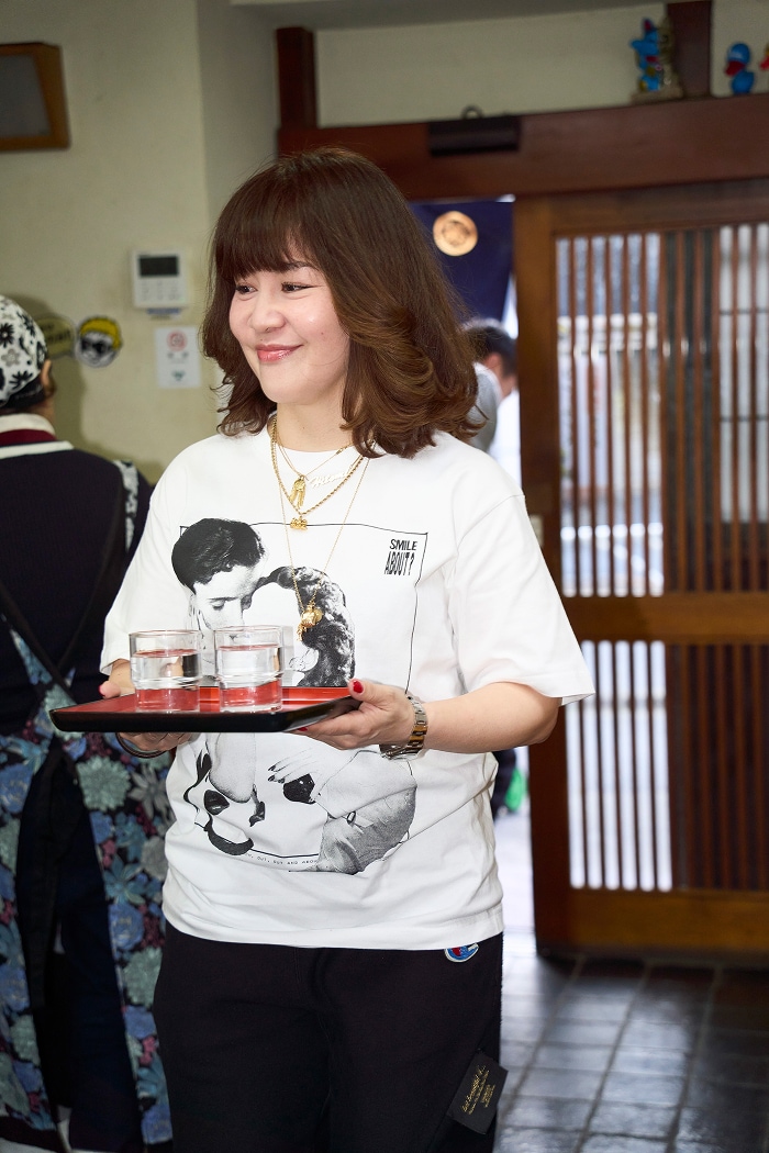 河村「偉そうじゃないというか、みんな愛があるところですね。たとえばアパレルだったら自分のブランド以外は競合になるから色々あると思うんですけど、彼らにはそういうのは関係ない。人との繋がりをすごく大切にする人たちなんです。僕の人格も、ほぼほぼみんなから影響を受けてできあがったものです。今日はそんな人たちが、僕がデザインしたTシャツを着ているという撮影だったので、ちょっと緊張しました(笑)。いつものみんなが着ている!っていう(笑) 。普段、自分が作ったものを目の前で着てもらう機会があまりないので、気恥ずかしさもありつつ、やっぱりすごく嬉しいですね」
