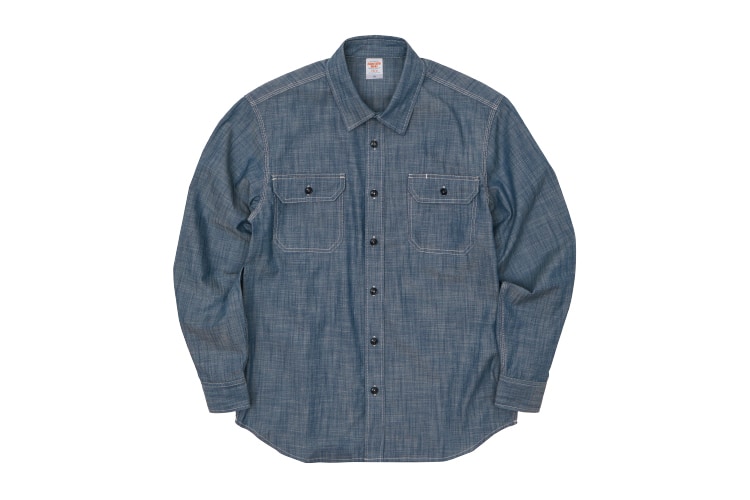 ヴィンテージ感漂う表情豊かなスラブシャンブレー素材のシャツ。猫目ボタンや粗めの縫製糸、3本針のチェーンステッチなど、クラシカルなディテールに徹底的にこだわった味わい深い一枚。
